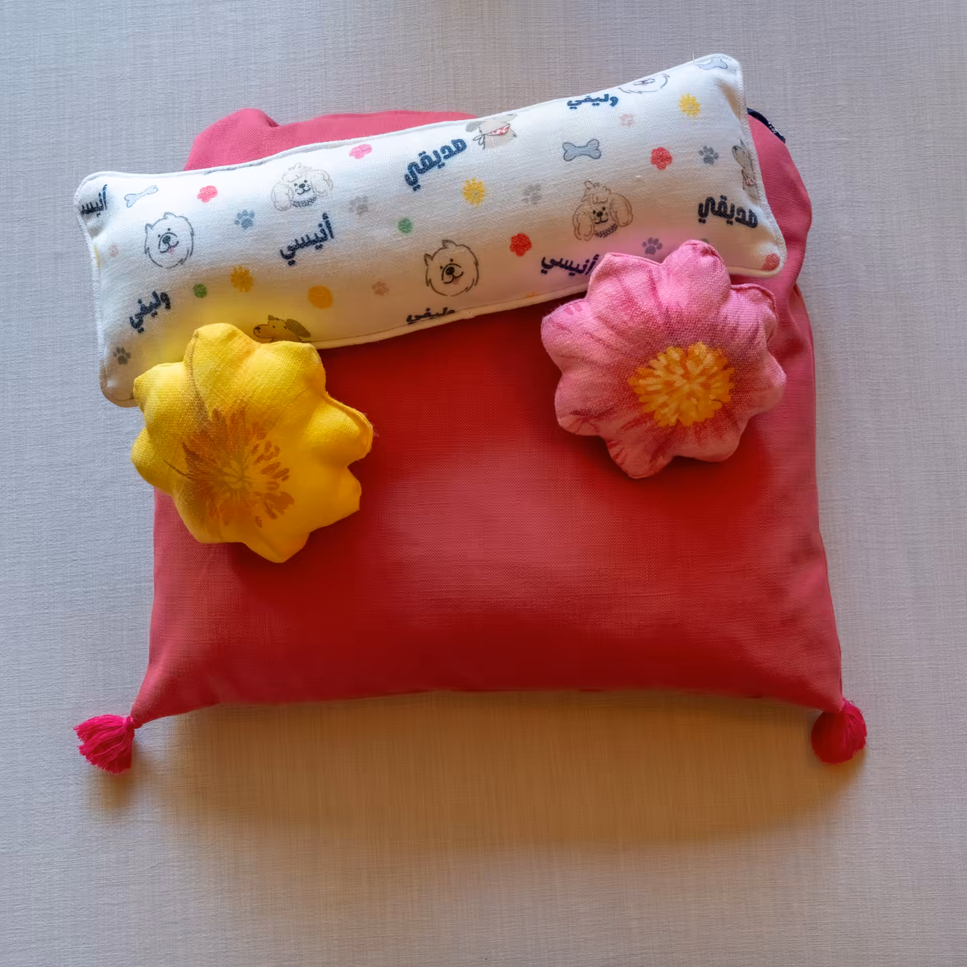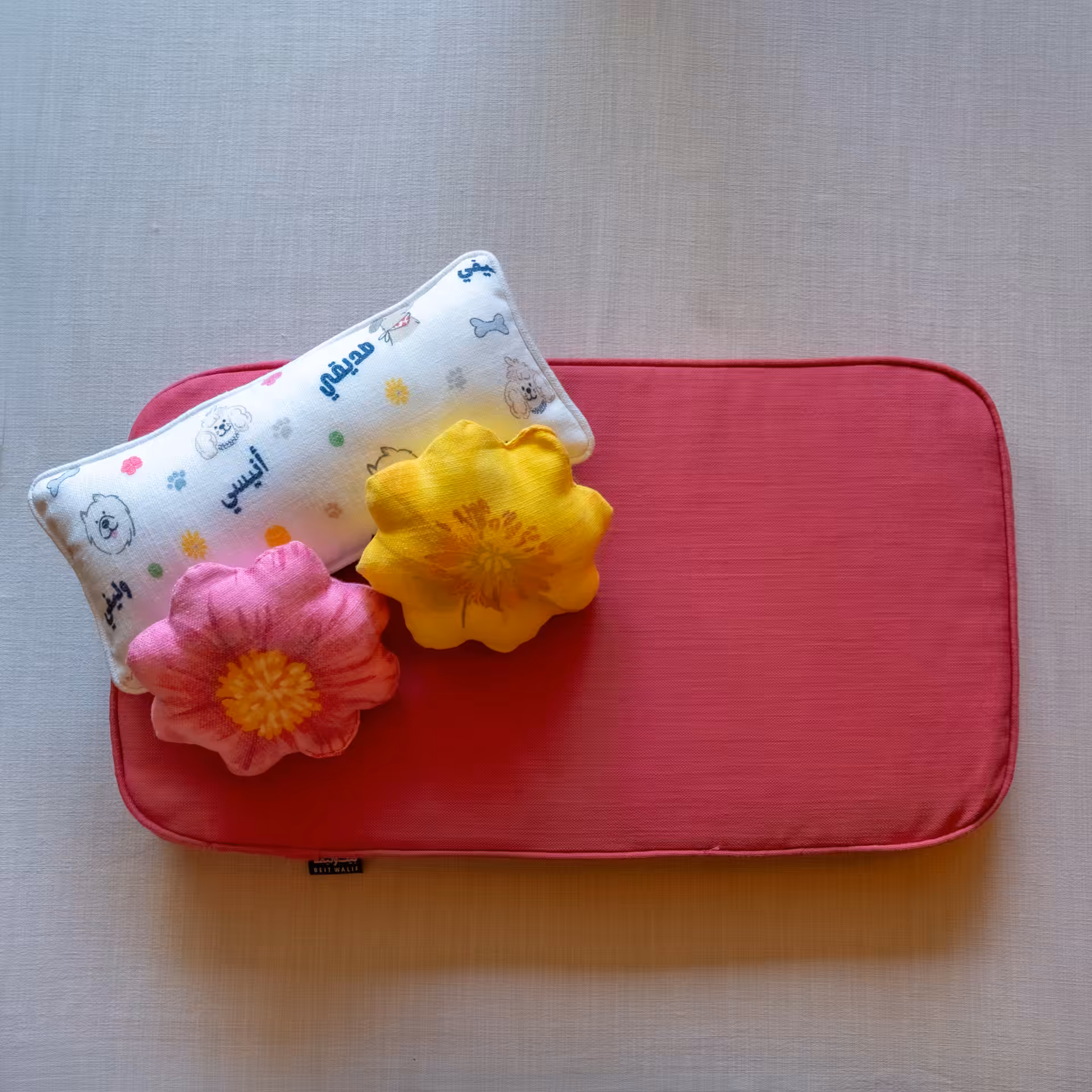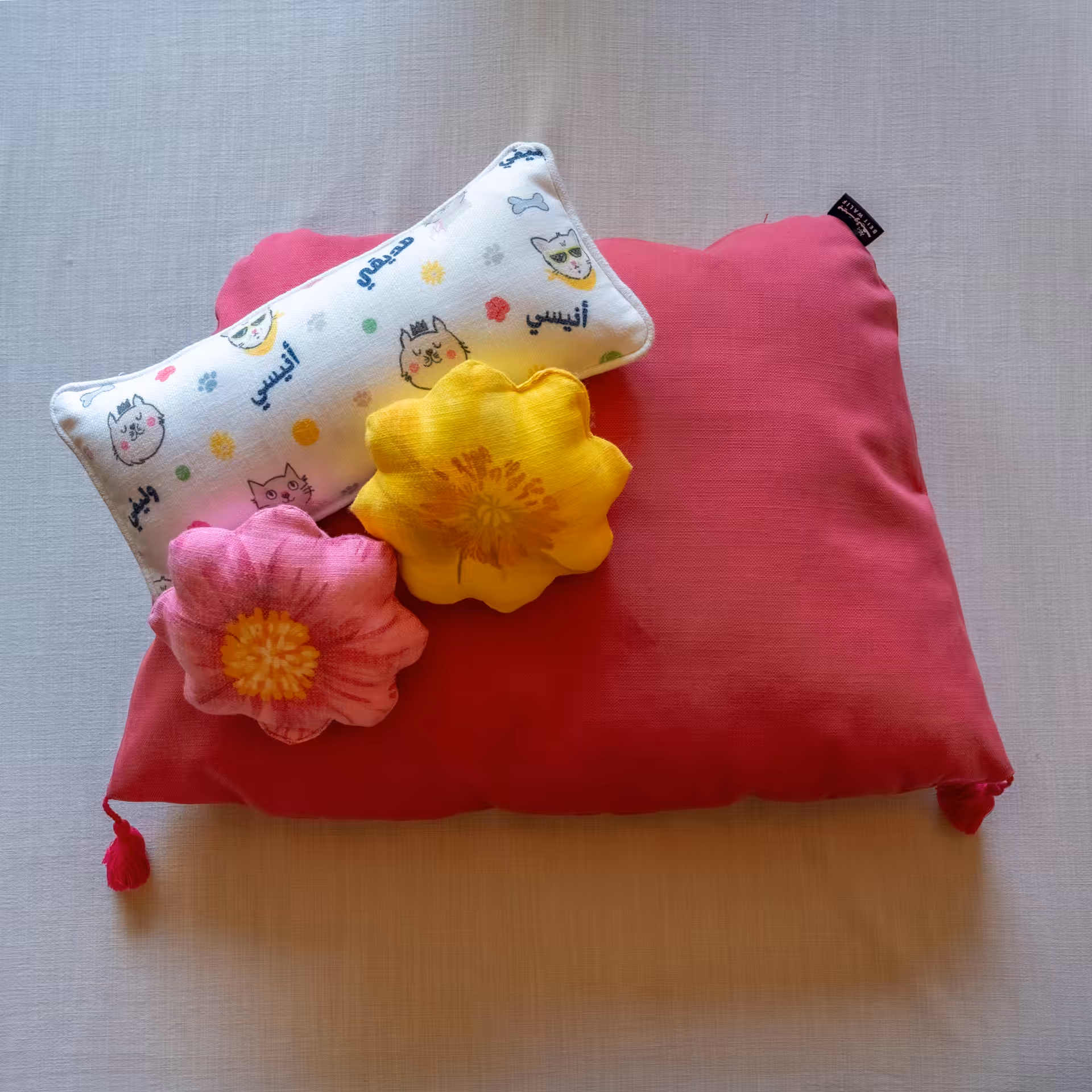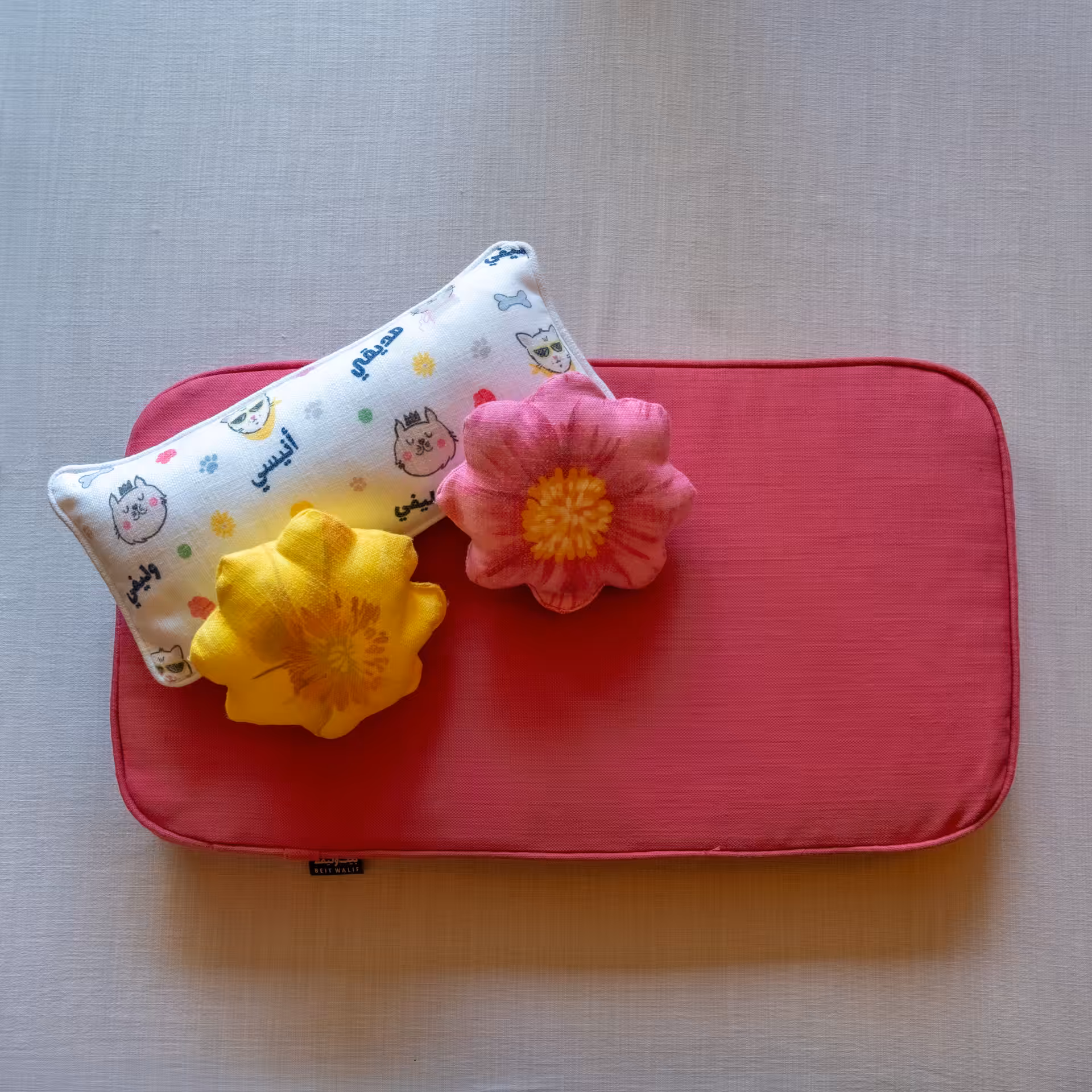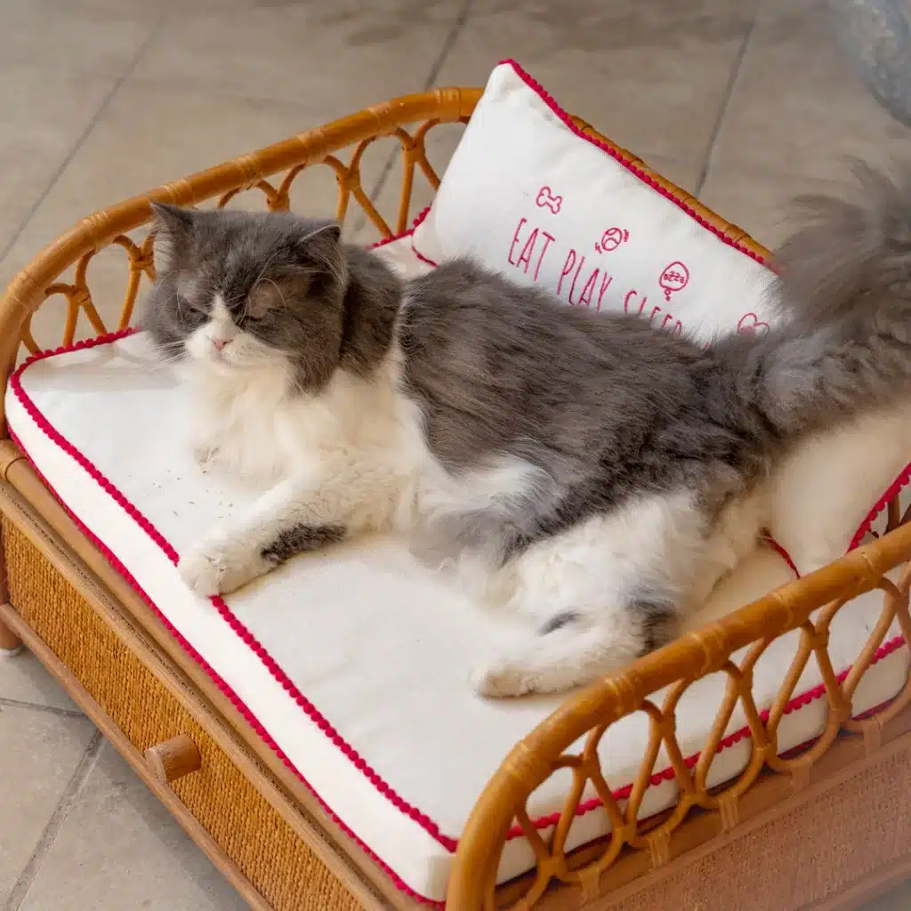 • The Patterned cushions are made with soft linen; gentle on their fur and oh-so cozy