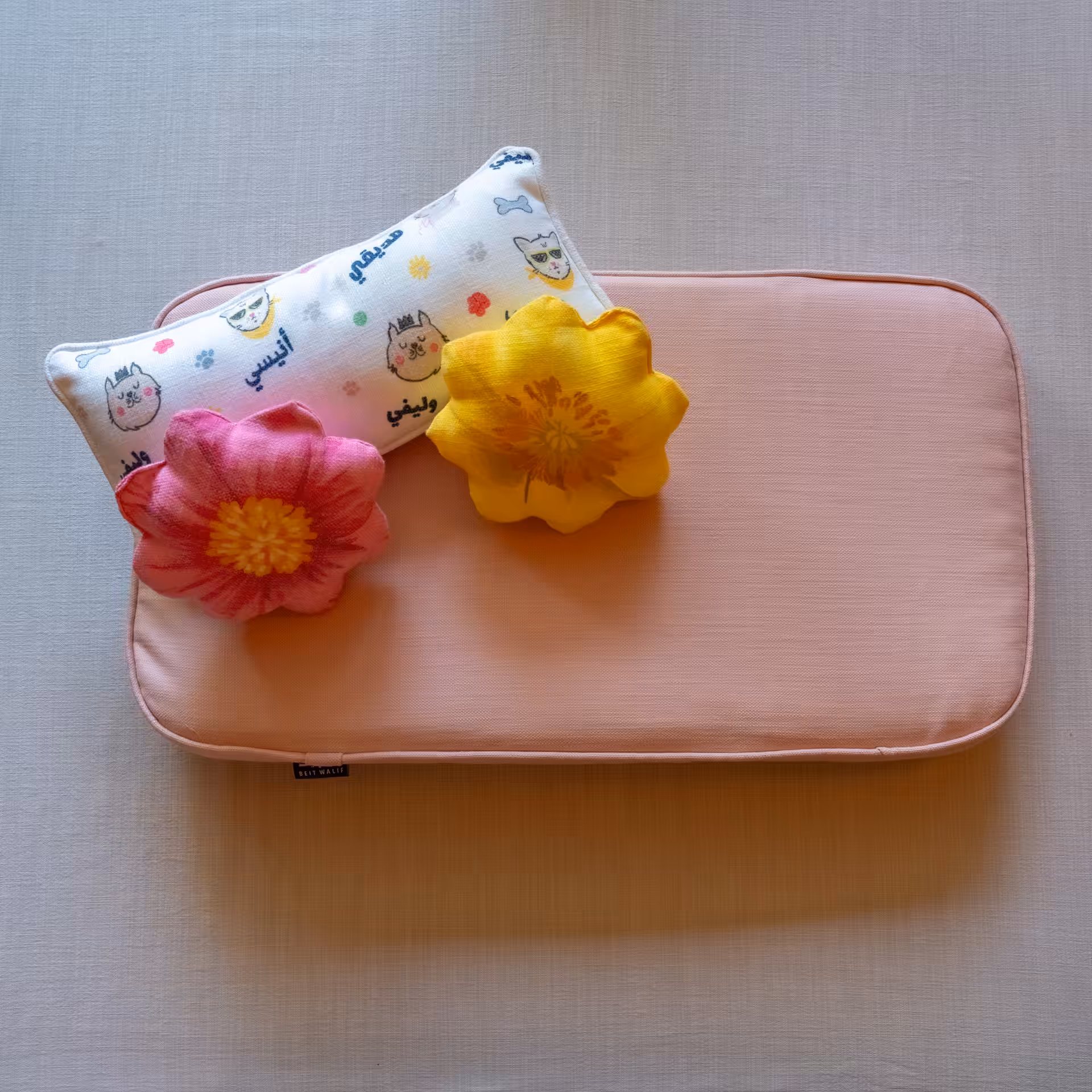 • The Patterned cushions are made with soft linen; gentle on their fur and oh-so cozy