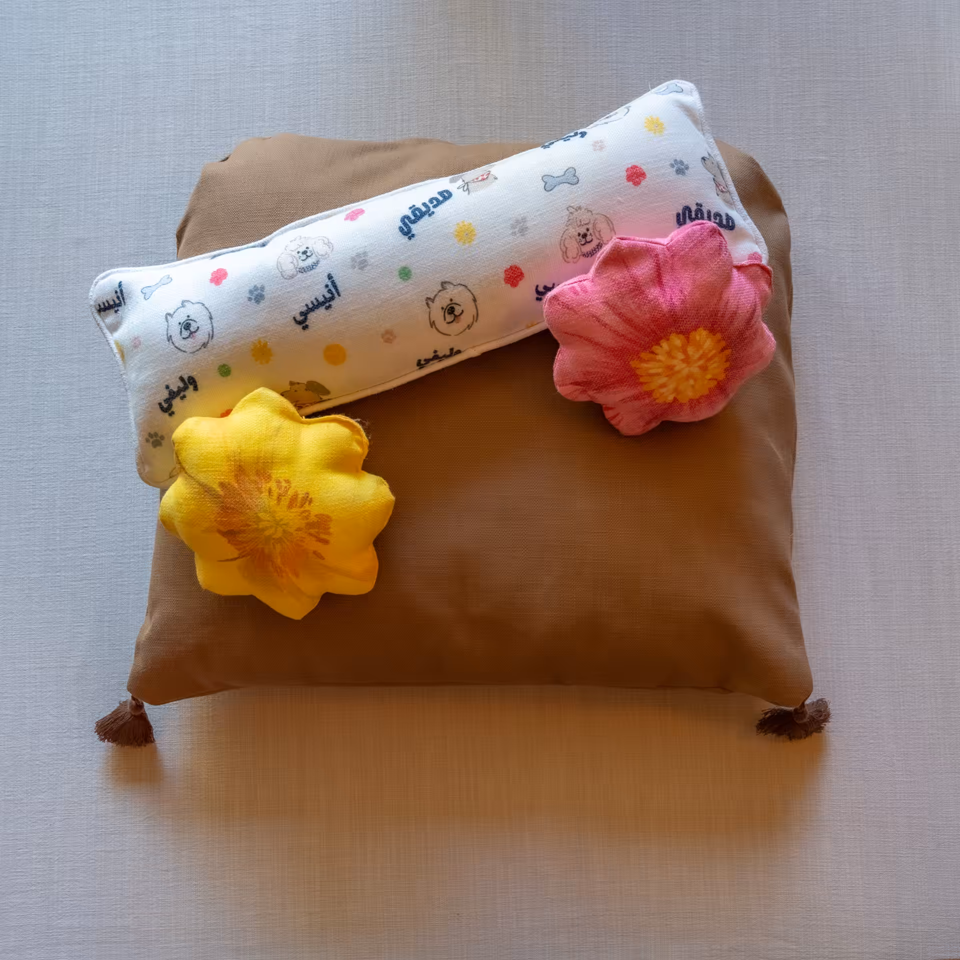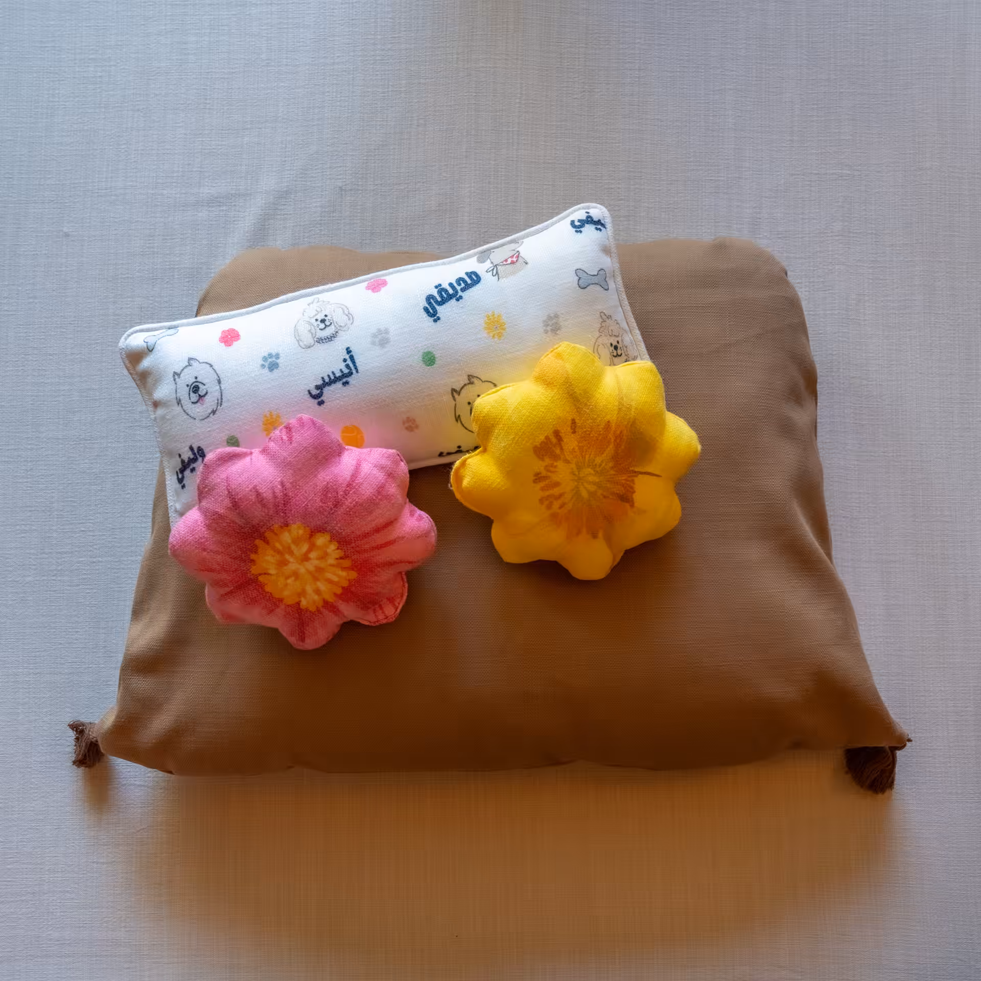 • The Patterned cushions are made with soft linen; gentle on their fur and oh-so cozy